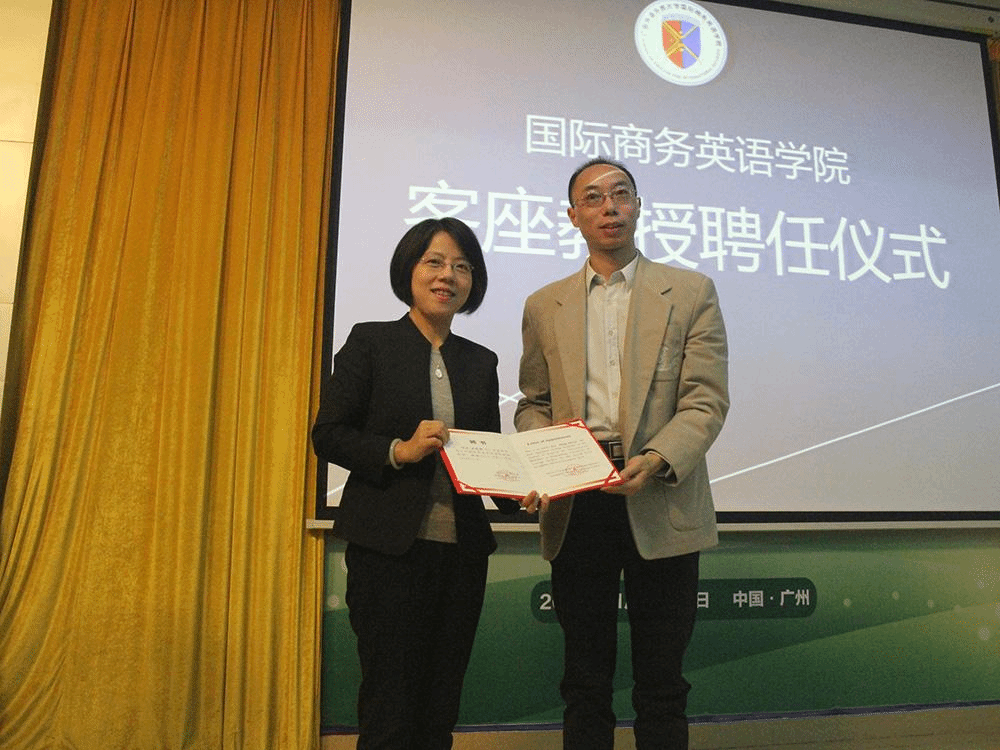 本网讯 11月20日晚七点,国际商务英语学院(下面简称“商英学院”)校友职业论坛在水上报告厅成功进行, 2级国贸系校友、现任普华永道英国所中国业务部首席合伙人姜甦唯女士返校倾情主讲。商英学院院长郭桂杭、党委书记王秀民出席活动,200多名同学现场聆听。姜甦唯此行正式受聘为我院客座教授,郭桂杭院长颁发聘书。
