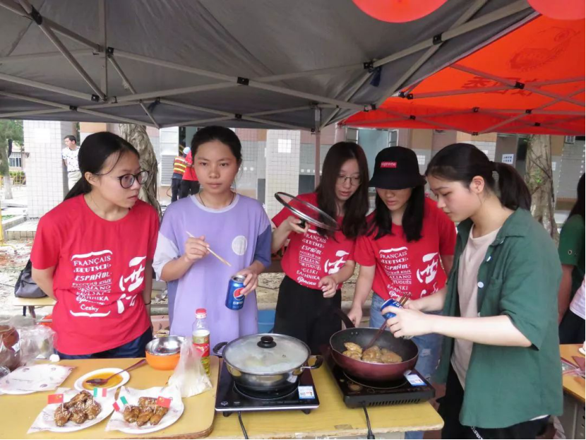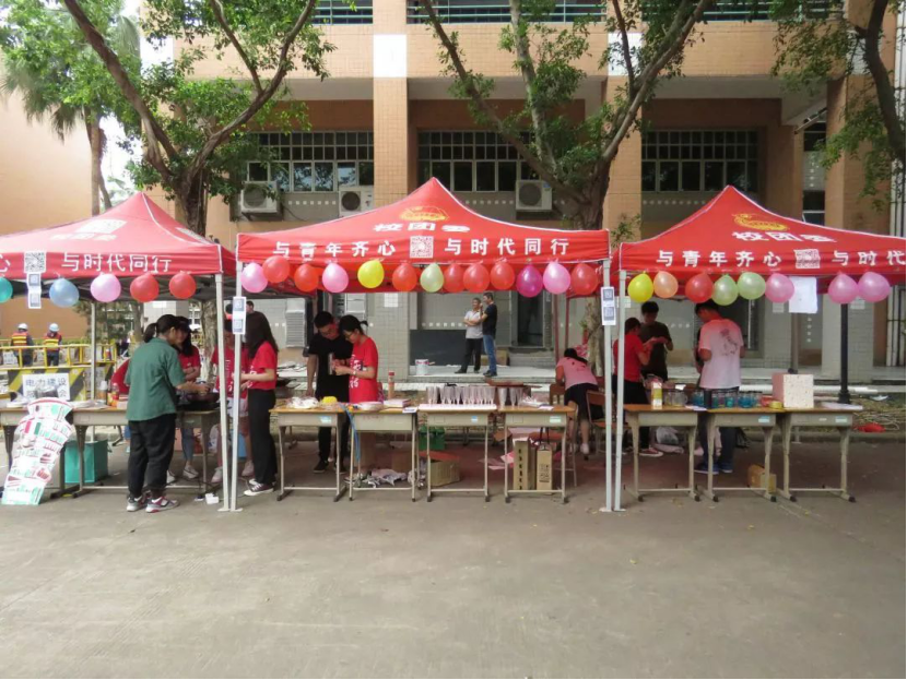 美食节开幕前各摊位工作人员们正忙着准备美食