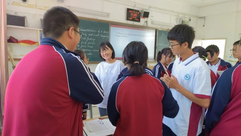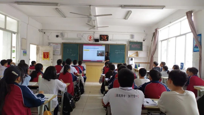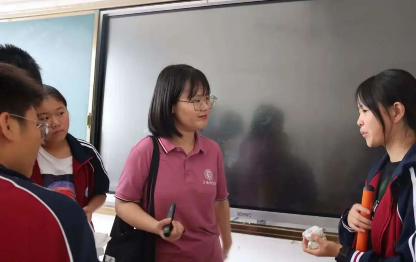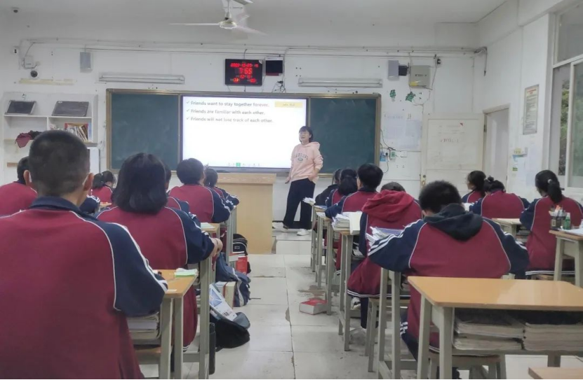 同时,在方老师的热情指导下、在跟着高一英语备课组的学习下,我的教学愈发成熟,教学自信也越来越足。方老师总会在我失意的时候不断鼓励我,毫无保留地向我传授教学经验,甚至向英语教研组推荐,让更多老师看到广外研支团老师的风采。高一英语备课组会充分给予我备课机会,和我一起磨课。因此,我还得到了许多代课的机会,遇见了非常多可爱的学生。这学期,我共在9个班级进行过教学工作,如跟我一拍即合的高二(8)班和高一(8)班、无条件给我课堂反应的高一(14)班和(15)班等,我也称得上是响当当的人物了嘻嘻!每当同学们表示对我以及课堂的喜爱,无论备课有多累,站上讲台的那一刻我就是精神抖擞的,只因与同学们相处的每一刻都让我欢喜!