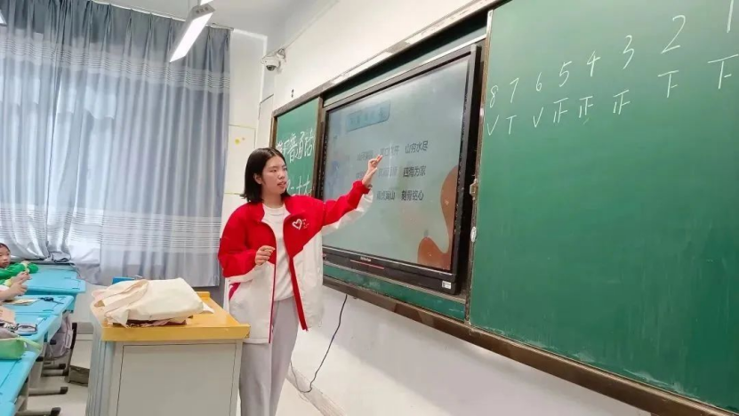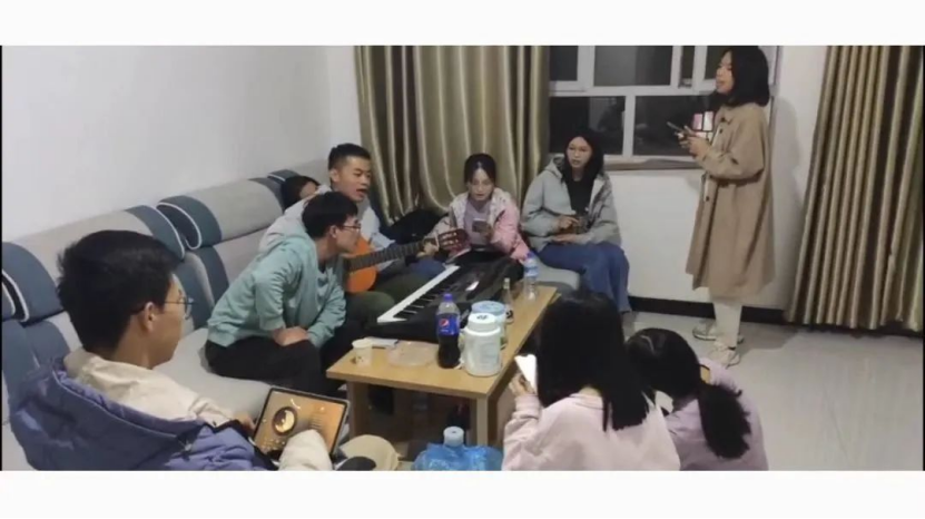 和广东支教大学生一起唱歌、聊天
