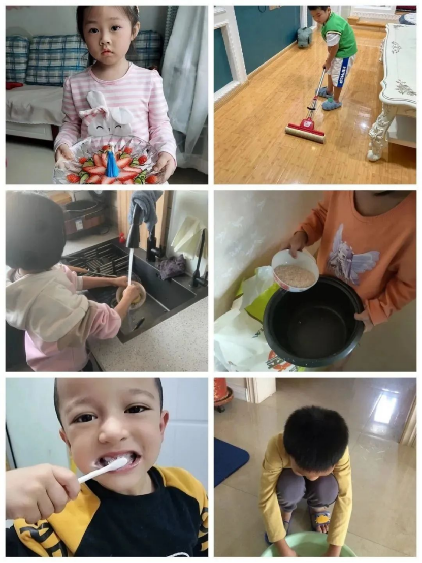 于是我给同学们布置了好几类作业:一方面要求他们学会简单的家务劳动,如扫地拖地,收拾餐桌等;另一方面让他们提高个人自理能力,如保护牙齿,手洗袜子、鞋子等;还有让他们参与做饭、做水果拼盘,体验劳动的乐趣,看着孩子们亲手完成的优秀作业,我惊叹他们的动手能力,写下评语:“做得很好,老师奖励你一朵小红花!”