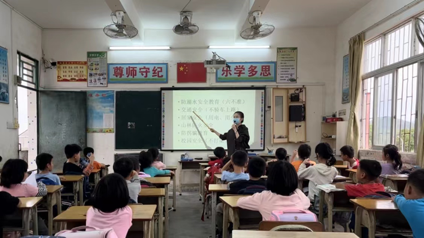 初到支教学校,谢依婷便接下了语文科任老师兼班主任的任务。除了日常的教学任务外,谢依婷每天还有一份特别的任务。在乡村地区,河流、小溪和小水沟等水域众多,小学生由于好奇心强且自我保护意识相对薄弱,很容易在无人监管的情况下发生意外,失足落水。因此,包括谢依婷在内的老师们需要不断地对学生进行安全教育,提醒他们注意不要玩水、走路要结伴而行等等。