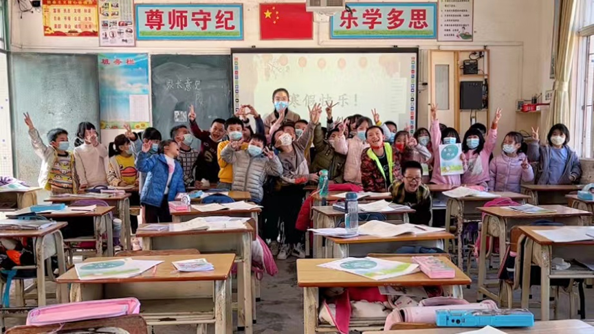 今年是谢依婷支教的第二年。在这所乡村小学中,师生数量都不算多。学校共设有三个班级,只有5名在编教师(包括一名主任和一名校长)、1名临聘教师,以及2名前来支教的志愿者,而由于主任除了管理职务外还要负责其他教务工作,因此每位教师都需要身兼数职,帮忙分担班主任的工作。