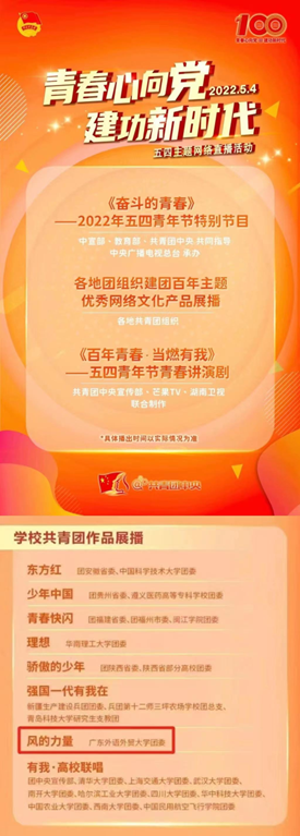 原创歌曲MV《风的力量》献礼党的二十大,并入围团中央建团百年“五四”主题网络直播活动学校共青团作品展播